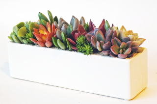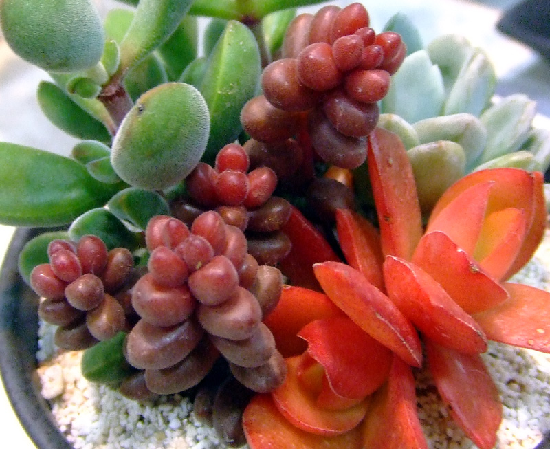 多肉が何種類も寄せ植えされているので、それぞれの個性が楽しめるのが、いいところ。